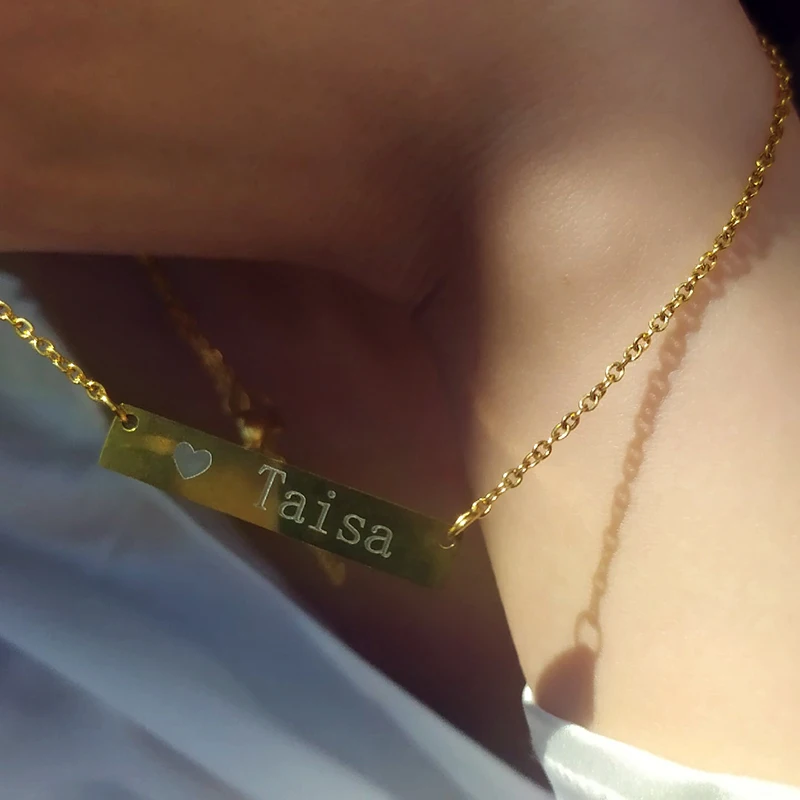 Кодовая гравировка, персонализированная квадратная планка, на заказ, ожерелье из нержавеющей стали, золотое ожерелье, 3 цвета, для женщин/мужчин, индивидуальный подарок