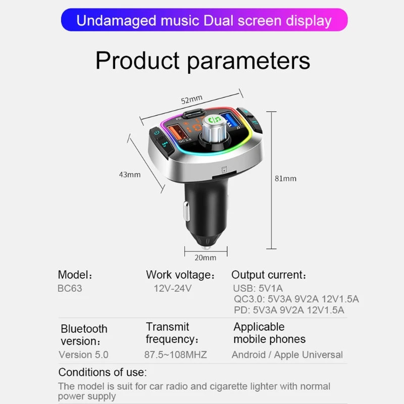Этот продукт является автомобильным bluetooth плеером, встроенным передовым bluetooth и WMA.MP3, FLAC coder chip, может воспроизводить музыкальные файлы внутри U диска, без проводов передаются в автомобиль o, нет необходимости изменять ваш автомобиль может легко сделать вашу музыку наслаждаться во время вождения.
