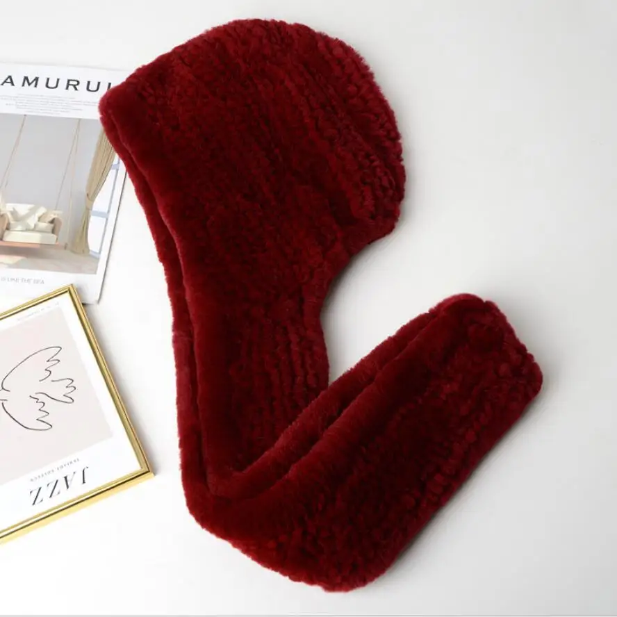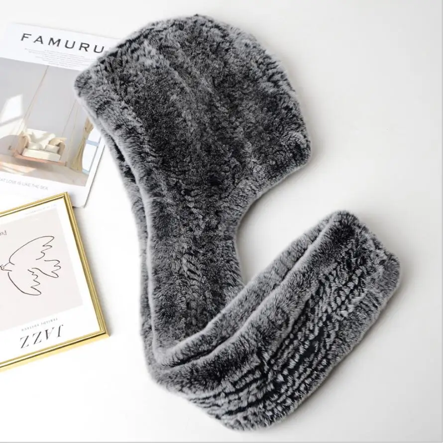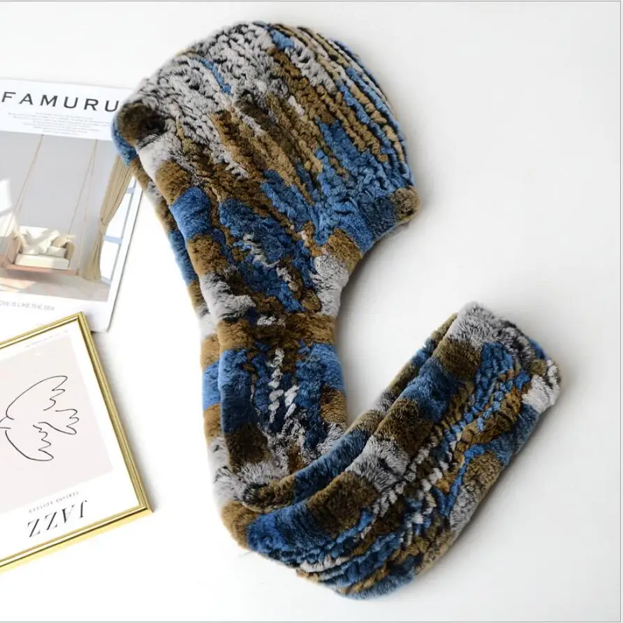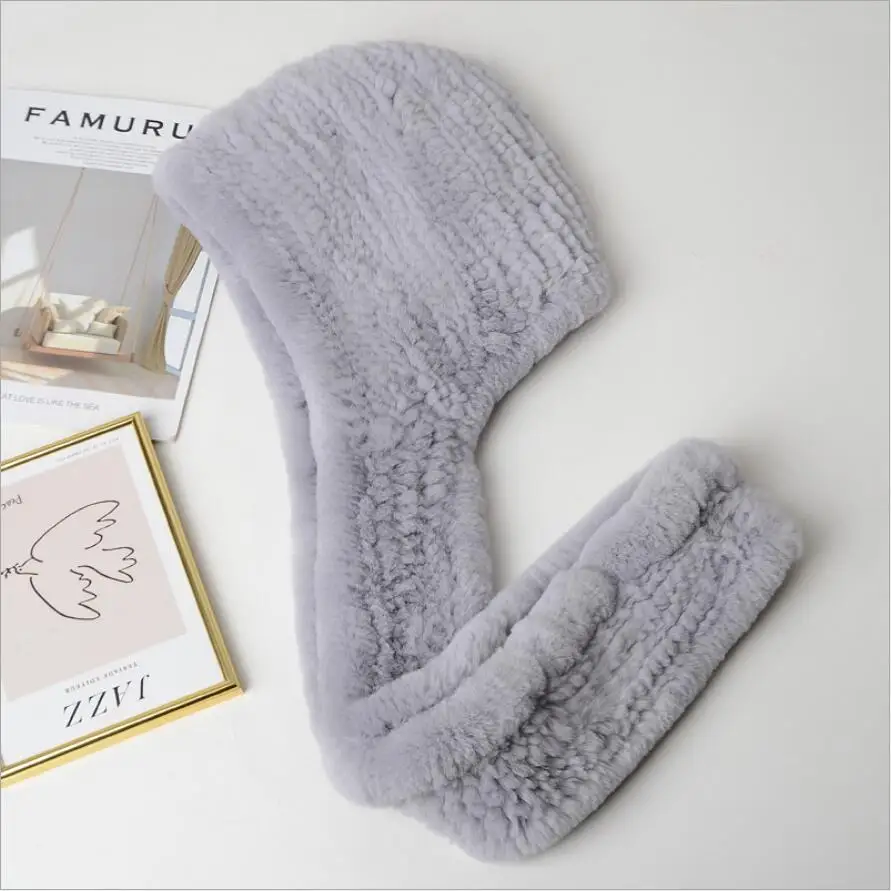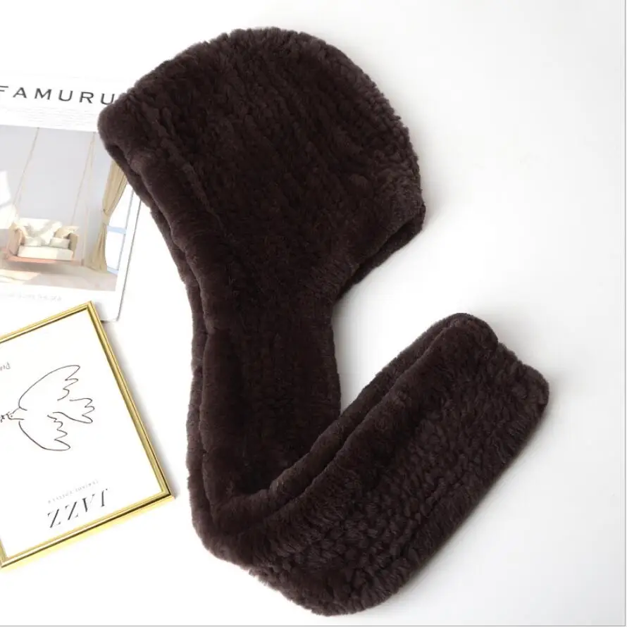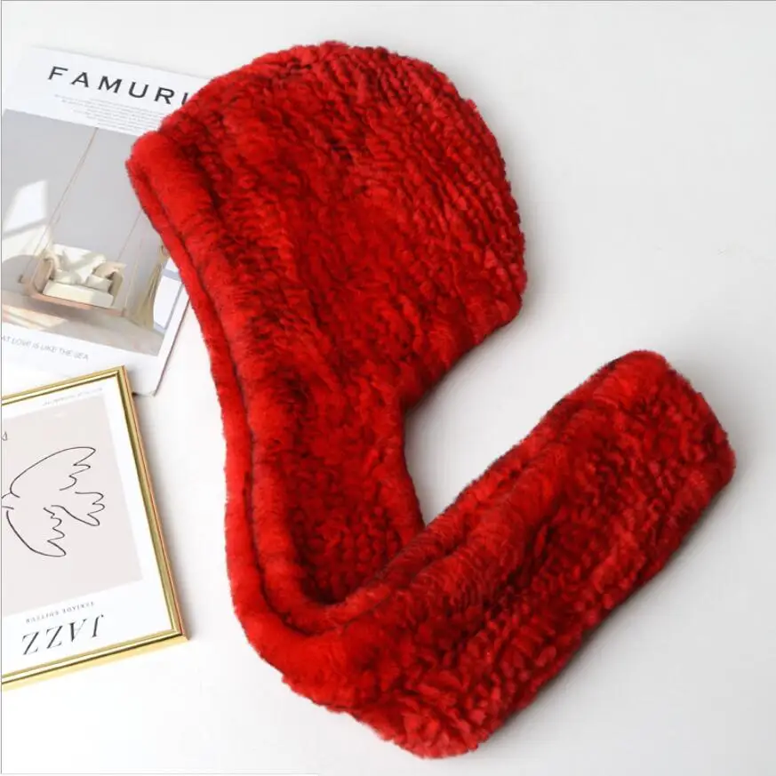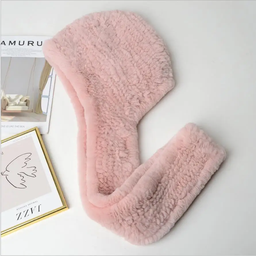 Зимние шапки для женщин Настоящий мех кролика шапка с шарфом одна штука ушанка теплая шапочка 2020 Новый розовый синий H04