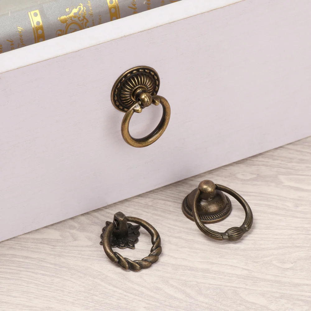 European Style Retro Ring Bronze Handles Wardrobe Pulls Single Hole Cabinet Pull Multi-purpose Auxiliary Durable Furniture Knobs