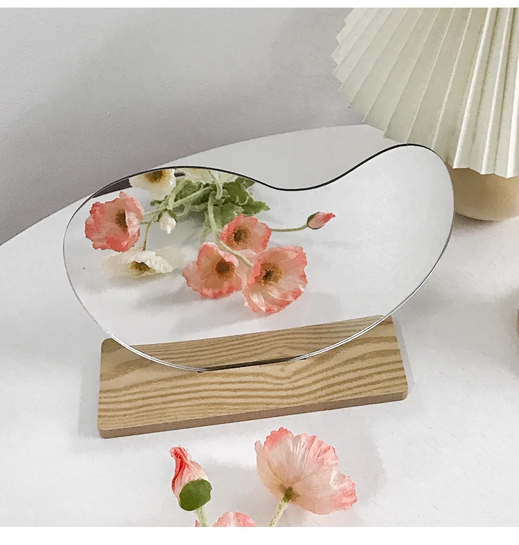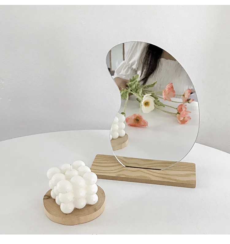 Ins Зеркала Макияж Акриловое декоративное зеркало деревянная основа Форма Луны домашний декор