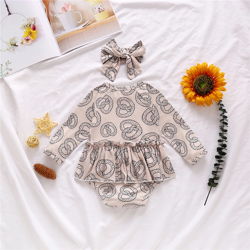 Комбинезон с круглым воротником для маленьких девочек; Детский цельнокроеный комбинезон с длинными рукавами и бантом
