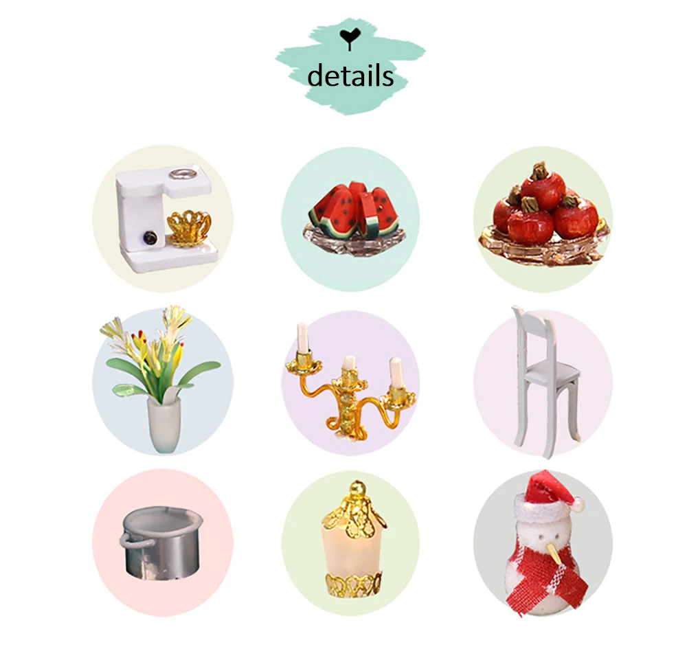Использование продукта: 1. Развивайте терпение и заботу о детях; 2. Выразите мои искренние благословения родным; 3. Соберите для себя; 4. Подарите другу; 5. Удивите своего любимого. Все товары такие же, как на изображении. Они поставляются с частями, и вам нужно собрать их самостоятельно. 1. Включая всю отображаемую мебель 2. Стиль: кухня в европейском стиле 3. Размер готового продукта: 13*11,5*12,5 см 4. Материал: дерево, ткань, бумага, смола, пластик, материал 5. Руководство: с инструкцией 6. Изделие имеет детали и должно быть собрано Примечание: 1. Не включает инструменты/клей/аккумуляторы. 2. Возраст: подходит для детей старше 8 лет 3. Дети до 3 лет должны сопровождать взрослых