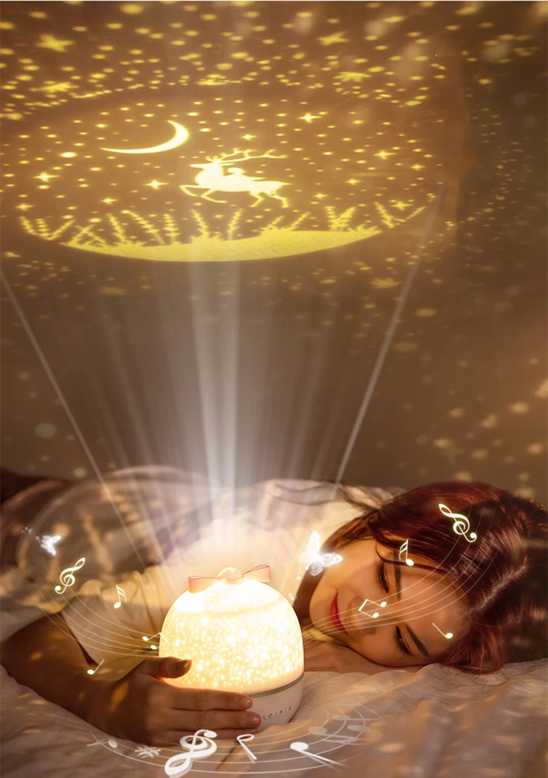 Материал: АБС-пластик + Поликарбонат Размер изделия: 131x131x139 мм Напряжение: 5 В Затемнение: плавное затемнение Светильник: белый, желтый, синий Источник питания: usb-разъем/перезаряжаемый Функция: ночной Светильник проектор музыкальная шкатулка
