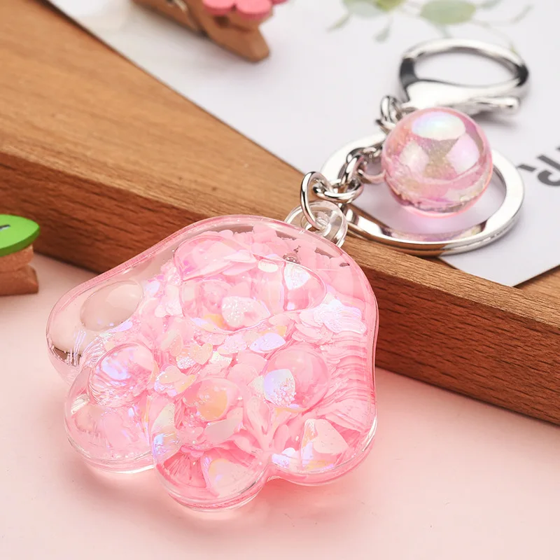 Мультяшный акриловый смазанный Кот брелок с изображением лап жидкий плавающий брелок с блестками Милая сумка Автомобильный держатель для ключей украшение подарки