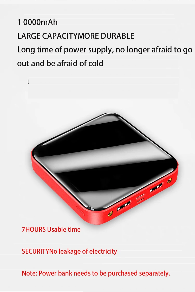 Источник питания: внешний аккумулятор USB (не входит в комплект, внешний аккумулятор емкостью 10000 мАч можно нагревать около 6-7 часов)