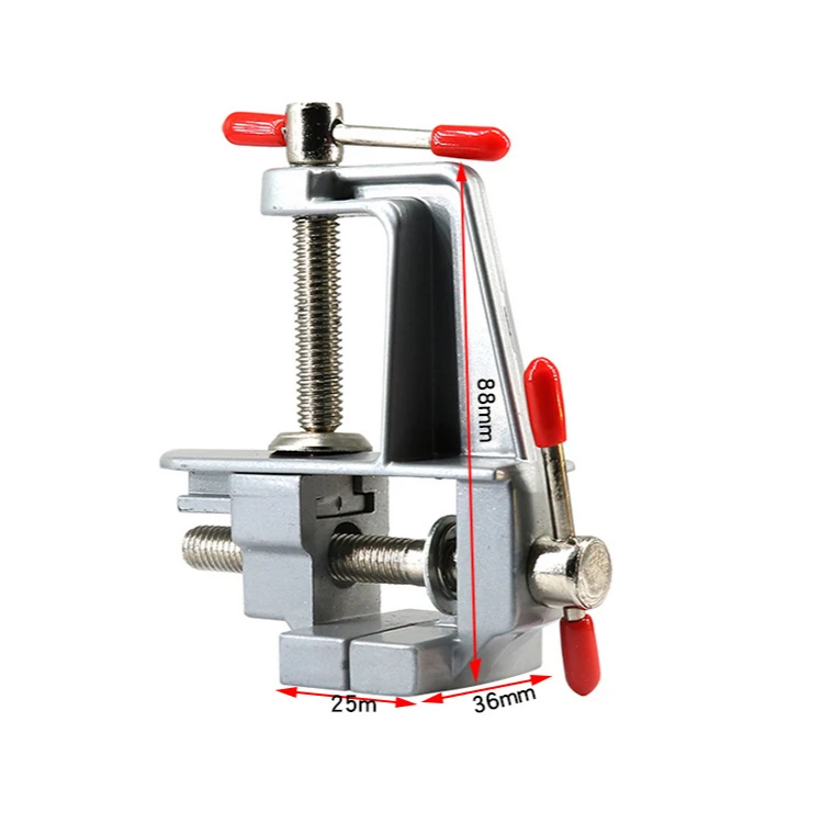 Тип: Настольный зажим Материал пилеров: сталь Ширина челюсти: 36 см Максимальный размер зажима: 35 мм Самый большой размер отверстия: 30 мм Вес нетто продукта: 150 г Особенности * 1. Полезные тиски: Портативный и удобный для переноски с вами * 2. Высококачественный материал: выбирает алюминиевый сплав, очень прочный и длительный срок службы Посылка 1 мини Таблица тиски