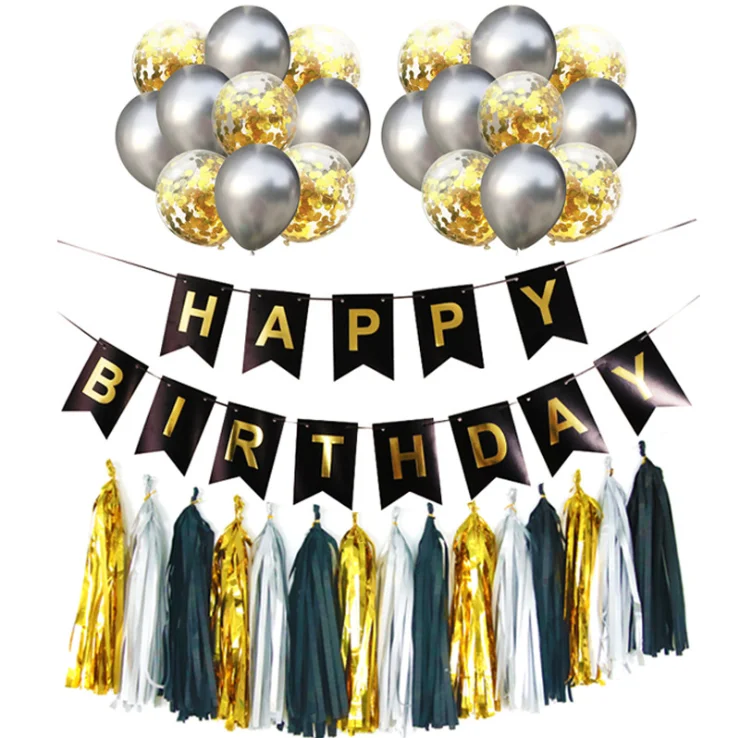 Золотой блокирующий баннер с надписью «Happy Birthday», черный бумажный Джем и веревкой в форме рыбьего хвоста, вечерние украшения