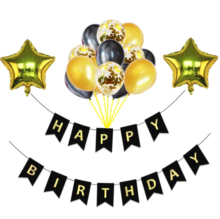 1 х Золотой блокирующий баннер с надписью «happy birthday» (включая 13 х бумажных джемов, 1 х струн)