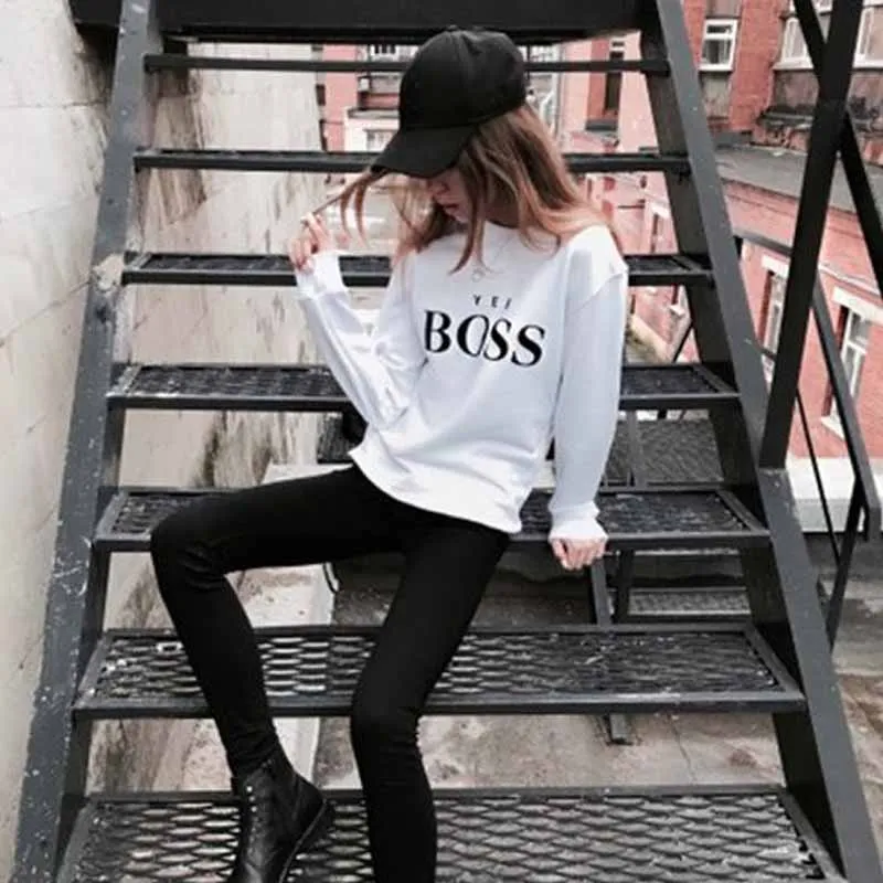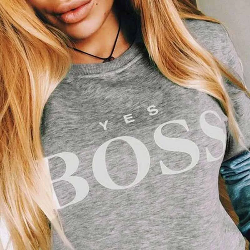 Harajuku в стиле «хип-хоп», Толстовка для женских сумок с надписью BOSS Печать круглая горловина Свободная Толстовка с длинным рукавом осень пуловер Женский топы 2020