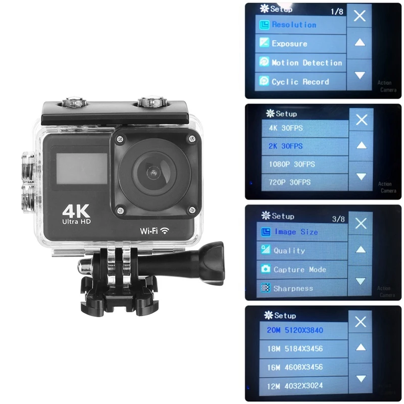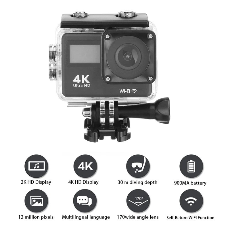 4K экшн-камера WIFI пресс Sn 8MP 30M Водонепроницаемая широкоугольная линза 170 градусов HD спортивная экшн-камера DV для спорта/дайвинга