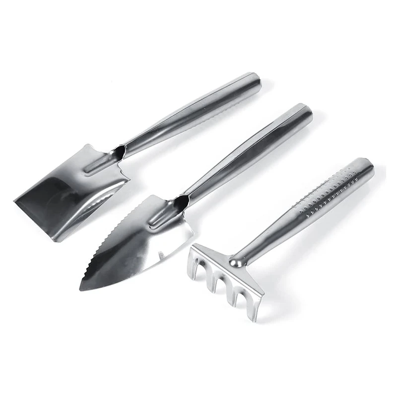 [Полностью оборудованный] Каждый комплект включает в себя инструменты из 3 предметов, лопату, лопату и грабли, маленькие и доступные, маленький помощник, необходимый для любителей сада, И приносит много удобства в использовании.