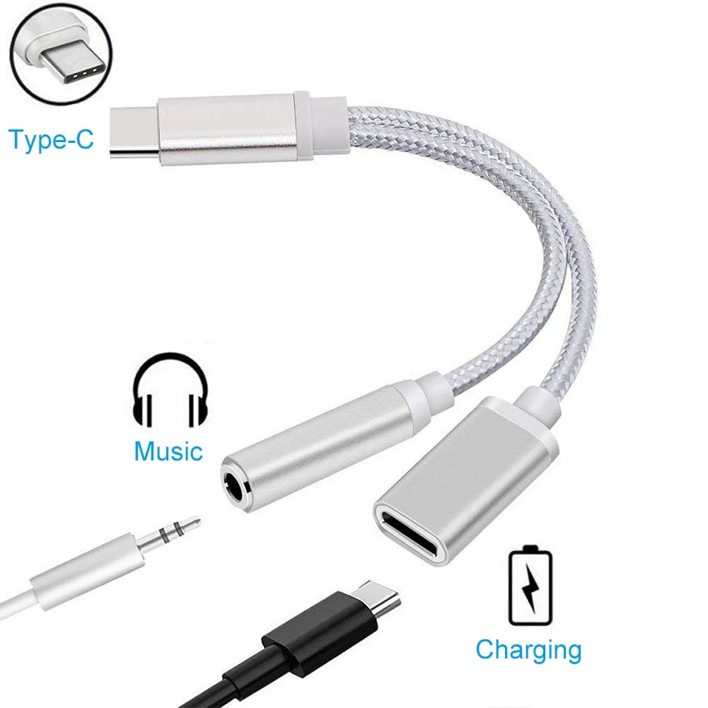 2 в 1 Тип с разъемами типа c и 3,5 мм для наушников аудио разъем Jack зарядный кабель конвертер адаптер