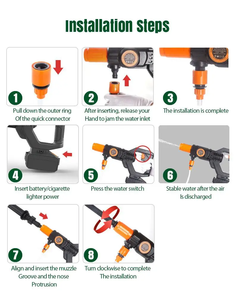 8. Его можно использовать в качестве водяного пистолета для мытья, инструментов для полива сада, идеально подходит для полива сада, сельскохозяйственного орошения, мойки автомобилей, уборки дома и так далее.