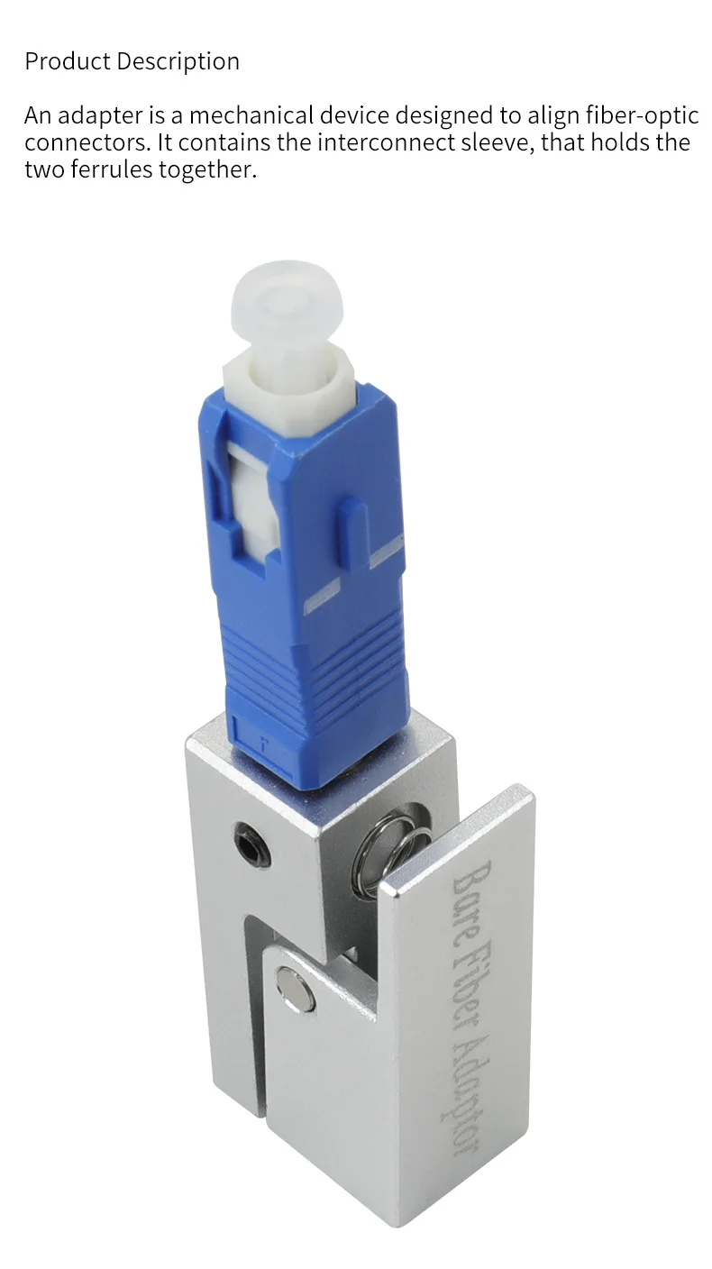 Голый волоконный адаптер i очень эффективный носитель для подключения голеного волокна к волоконно-оптическому devidce, он обычно используется при установке для тестирования звеньев. Одна сторона оптоволоконного адаптера-это голеное волокно, другая сторона-волоконно-оптический соединитель для подключения к оборудованию. FC,ST,SC,LC только волоконный адаптер.