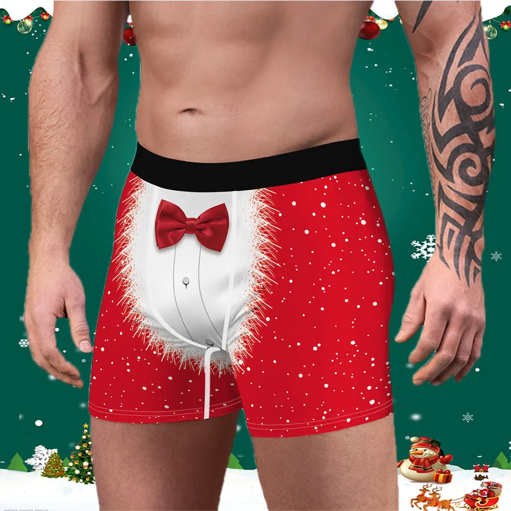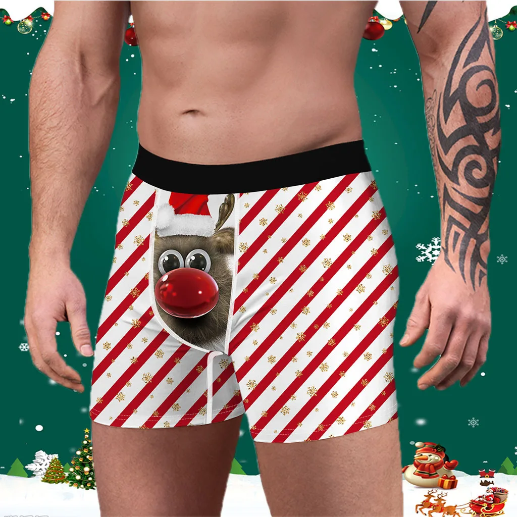 Мужское рождественское тонкое дышащее Спортивное нижнее белье с принтом, длинные штаны на плоской подошве