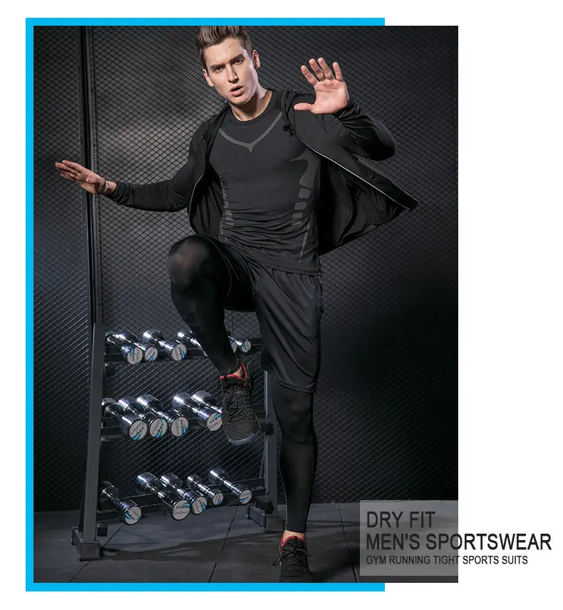 Спортивная одежда для занятий фитнесом для мужчин, компрессионная спортивная одежда, костюмы, черный спортивный костюм для бега, набор, тренировочные колготки для бега, сухая посадка