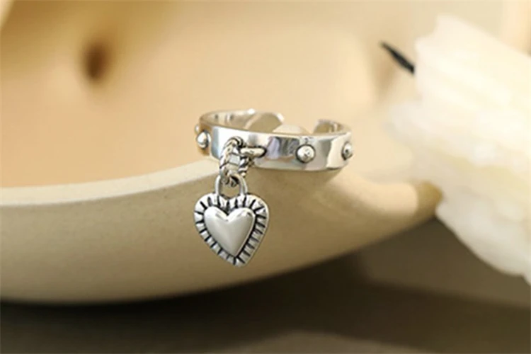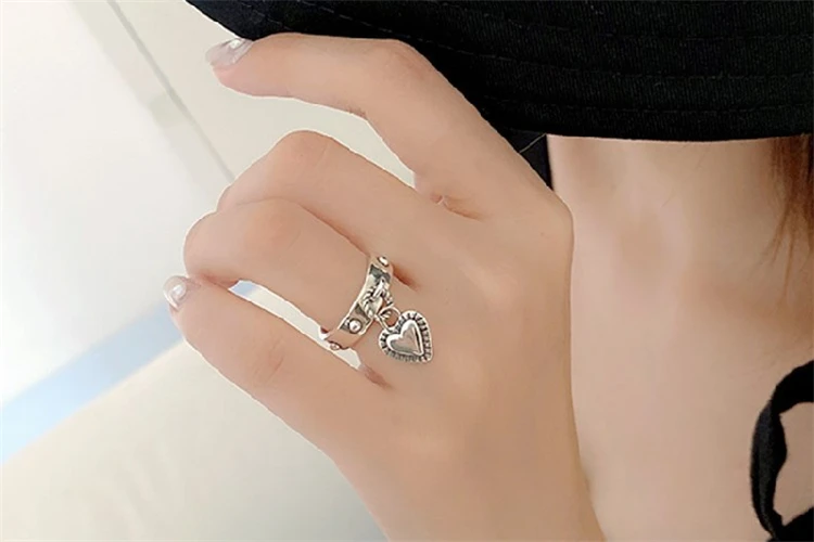 Корейские модные женские стильные кольца в форме сердца в стиле панк-рок, регулируемые кольца из тибетского серебра, ювелирные украшения для девочек, оптовая продажа, рождественский подарок