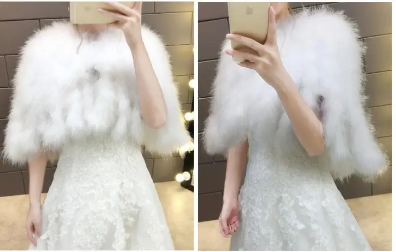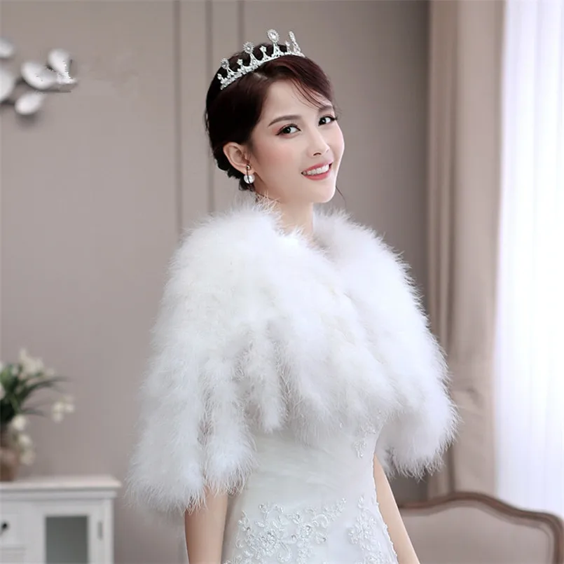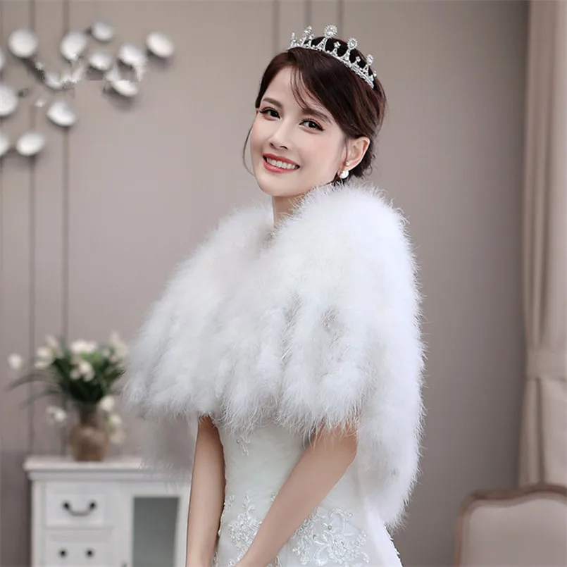 Реальная страуса накидка с перьями для женщин, теплая зимняя одежда с мехом, свадебная накидка роскошный болеро невесты белого цвета и цвета слоновой кости, свадебная накидка вечерние шаль S7