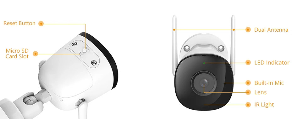 Обладая пробиванием стены и анти-помехами, двойная антенна Bullet 2C камера легко обрабатывает дальность передачи. Наслаждайтесь уверенностью при установке камеры на передних воротах или во дворе, Сохраняя стабильное и надежное соединение.