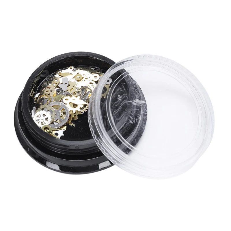 12 шт., 12 цветов, акриловый УФ-гель, дробленый корпус, блестящие наконечники и 1 коробка, стимпанк, колесо, шестерня, форма, часы, детали для дизайна ногтей