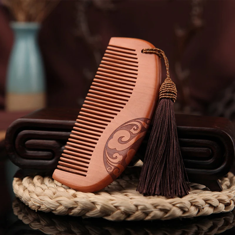 В Корейском стилеKenedБутик старое красное дерево резная Расческа Антистатические против выпадения волос расчески двухсторонняя расческа персиковая деревянная расческа для волос
