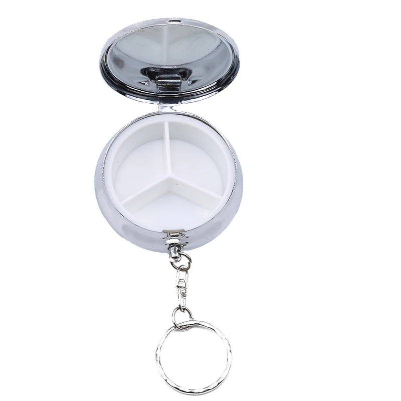 Модный бренд Серебряный компактный круглый металлический держатель для таблеток Органайзер мини 3 отсека портативный органайзер для таблеток контейнер