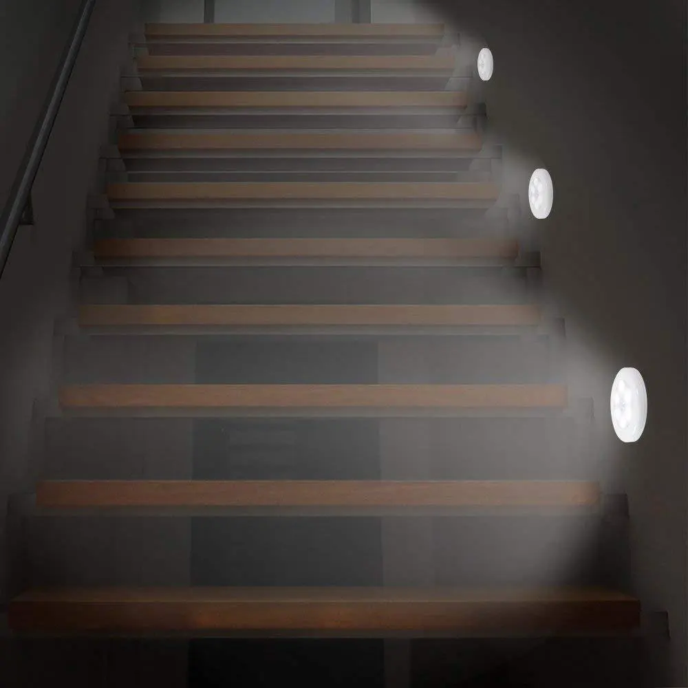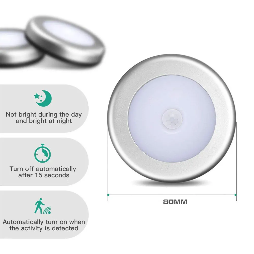 Светодиодный светильник в ночное время обеспечивает светильник, который вам больше всего нужен. Характеристики: 6 светодиодный светильник s, обеспечивающий четкий яркий выход, подходящий для использования в любом месте, требуется дополнительный светильник, такой как шкафы, шкафы, ящики, кухни, ванные комнаты, спальни, коридоры, гаражи и многое другое! Технология датчика движения PIR включит светильник при обнаружении движения и автоматически отключается через 15 - 30 секунд бездействия. Магнитная подложка позволяет использовать светильник на магнитных поверхностях, но также может быть прикреплен к большинству других поверхностей с помощью наклеек, которые включены.