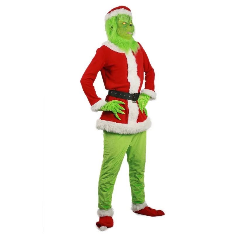 1. The Grinch Costume Package Including:Top+Pants+Belt+Hat+Gloves+Shoes Covers (Mask is separate to sell)