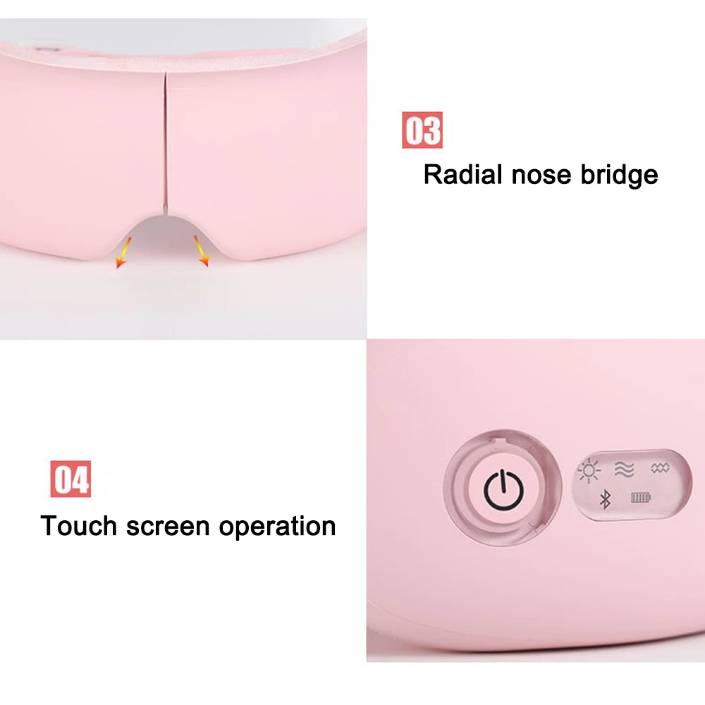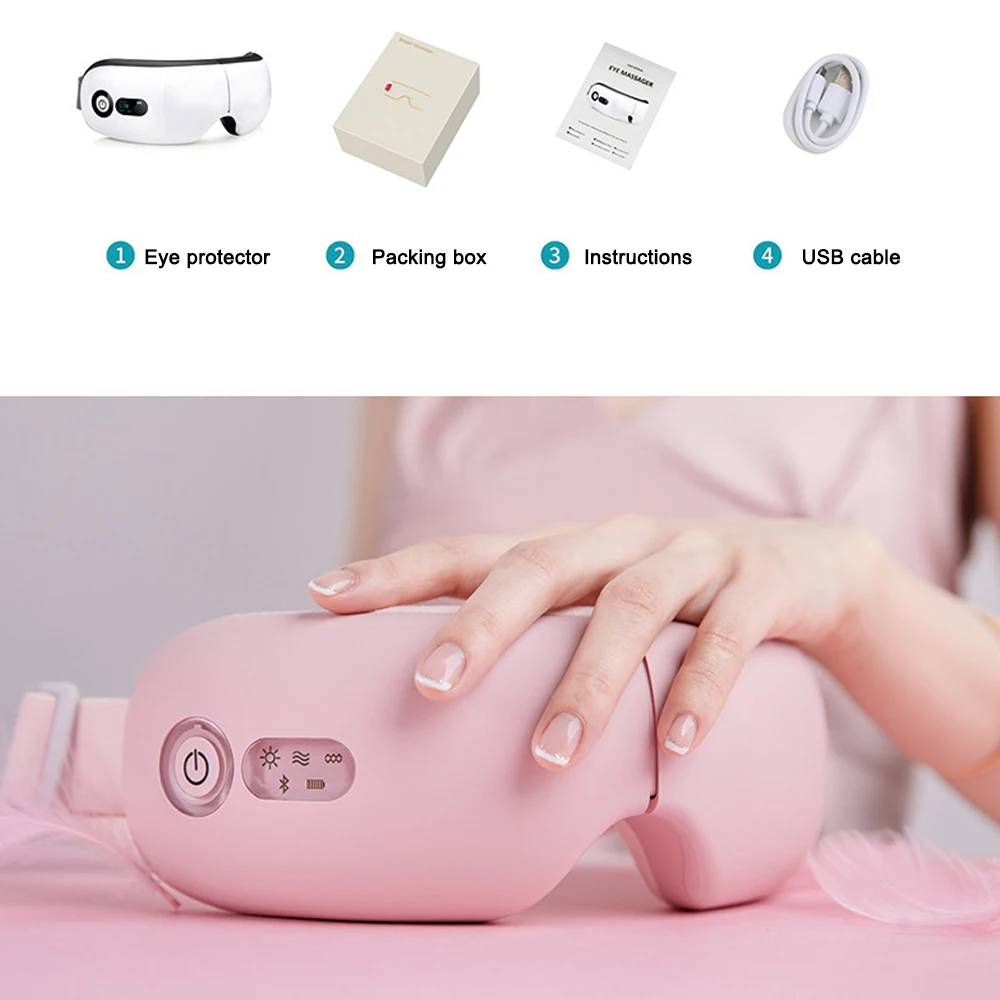 Особенности: Bluetooth 5 типов Воздушного Массажа Многочастотная вибрация Горячий компресс Usb-зарядка Время работы 180 градусов складной для удобного ношения Регулируемая повязка на голову