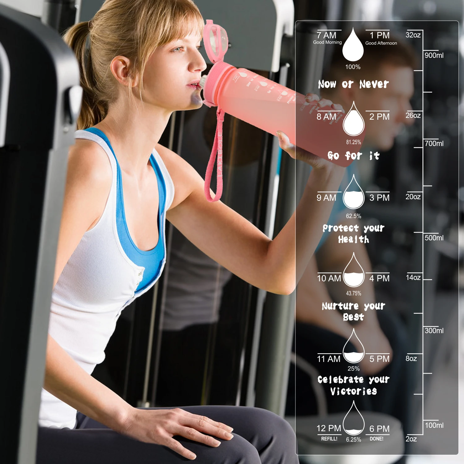 Тренажерный зал/Спорт/Йога/Туризм/Кемпинг/Путешествия/Велоспорт, тело теряет влагу быстрее, чем обычно. Выход небольшого размера позволяет медленно пить воду, обеспечивая Лучшее Поглощение воды в вашем теле, позволяя оставаться увлажненным и здоровым, в то время как точная маркировка объема LAKIBOLE может помочь вам сохранить увлажненный