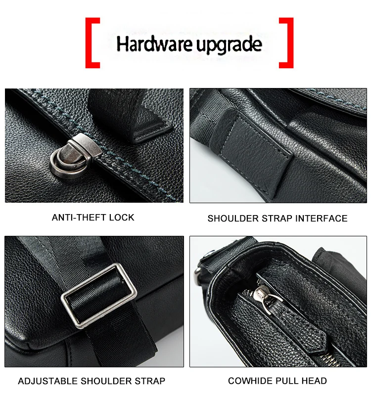 Название продукта: Wmnuo 100% Корова оригинальная кожаная мужская сумка с замком деловая мягкая сумка-мессенджер на одно плечо корейский большой вместительный карман для Ipad Материал: Высококачественная коровья натуральная кожа Размер: 30*20*7,5 см Емкость: мобильный телефон, сигареты, карты, кошелек, Ipad Структура: 1 передний карман, 1 внутренний карман на молнии, 1 Основная сумка, 1 задний карман, 1 ID карман Цвет: черный Примечание: 1. В связи с использованием различных методов измерения, возможны отклонения в размере от 1 до 3 см вследствие измерений вручную.(1 дюйм = 2,54 см; 1 см = 0,39 дюйма) 2. Из-за различных настроек монитора цвет изображения может немного отличаться от фактического цвета продукта.