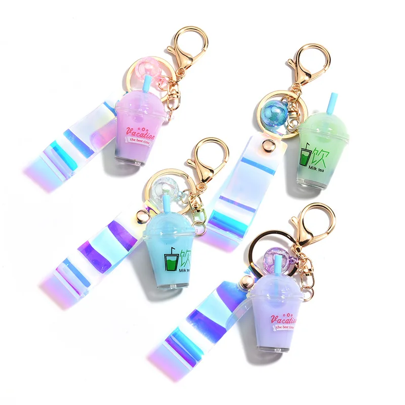 Креативный мини брелок для безалкогольных напитков, молочный чай, пузырьковый чай, брелок, подвижное жидкое масло, декомпрессия, ювелирные изделия брелоки, подарок