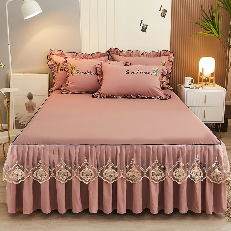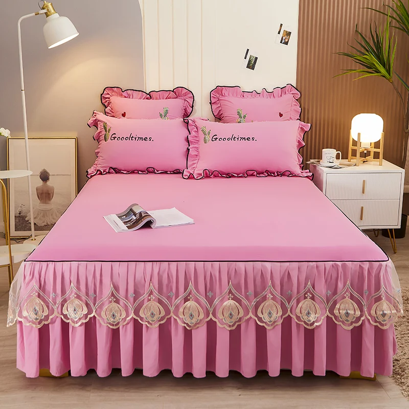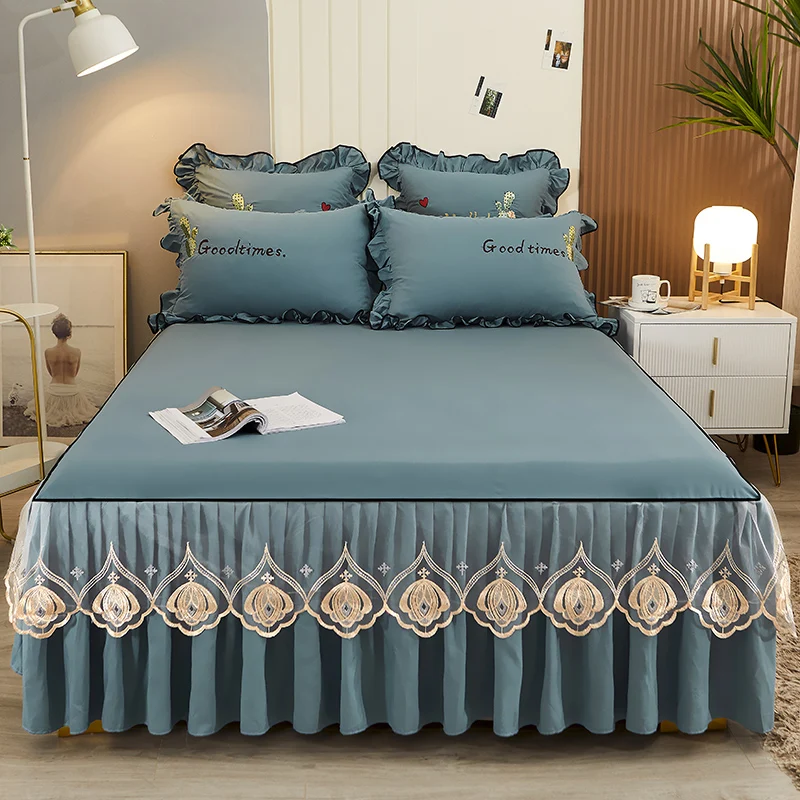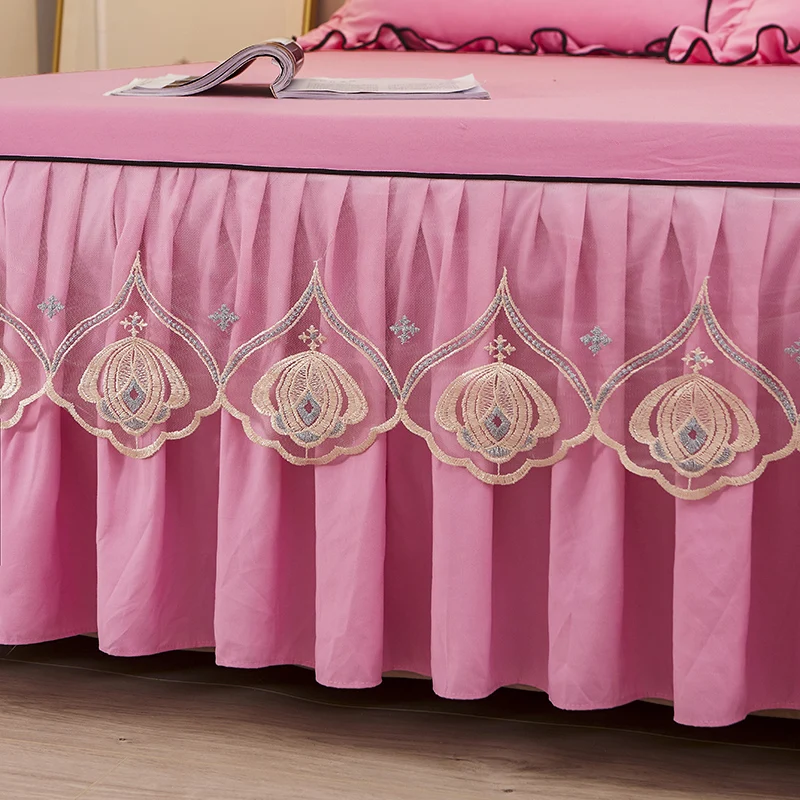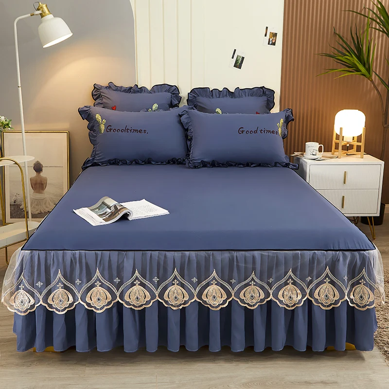 1 шт., украшенное окантовкой из кружева, кроватный подзор Романтический упругой покрывало, цвет: синий, бежевый и розовый покрывало постельным бельем кровати для 1,5/1,8/2,0 кровать текстиль для домашнего декора