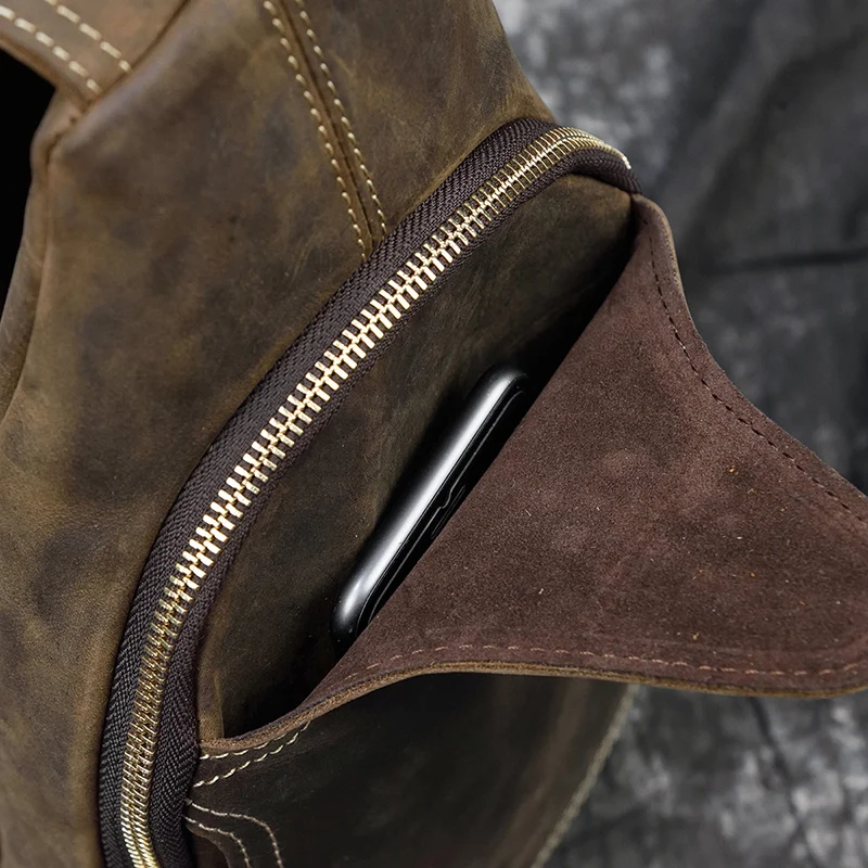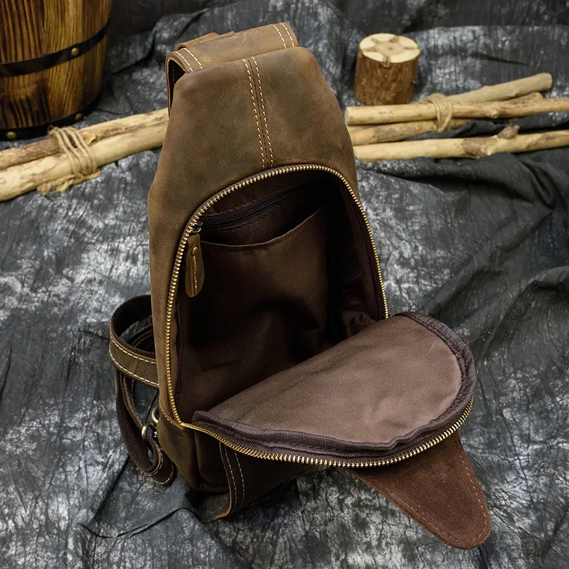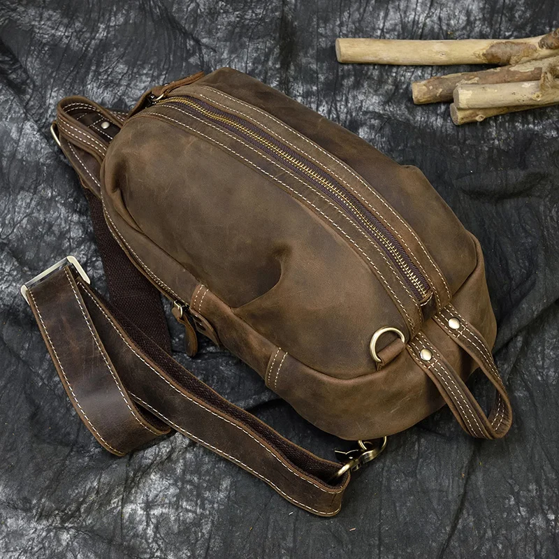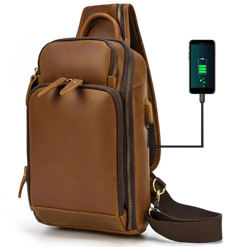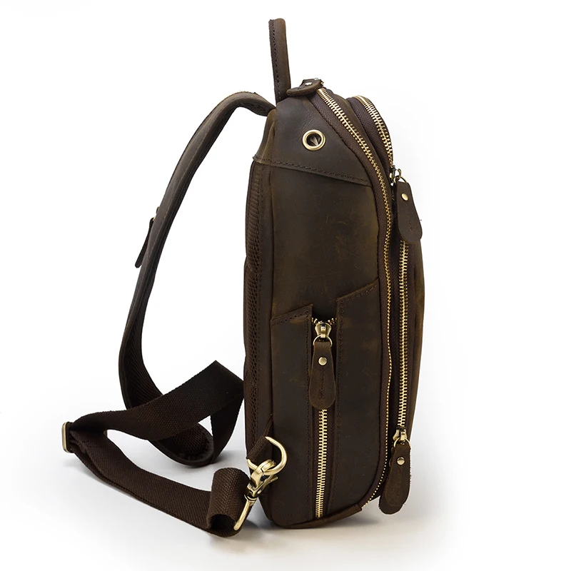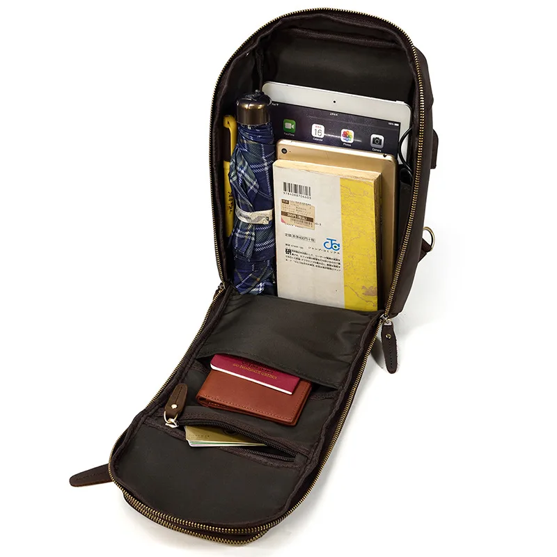 Материал: натуральная кожа, 100% воловья кожа Многофункциональный: наплечный рюкзак/нагрудная сумка Подходит для 9,7 дюймового iPad, длинного кошелька, телефона, складного зонта
