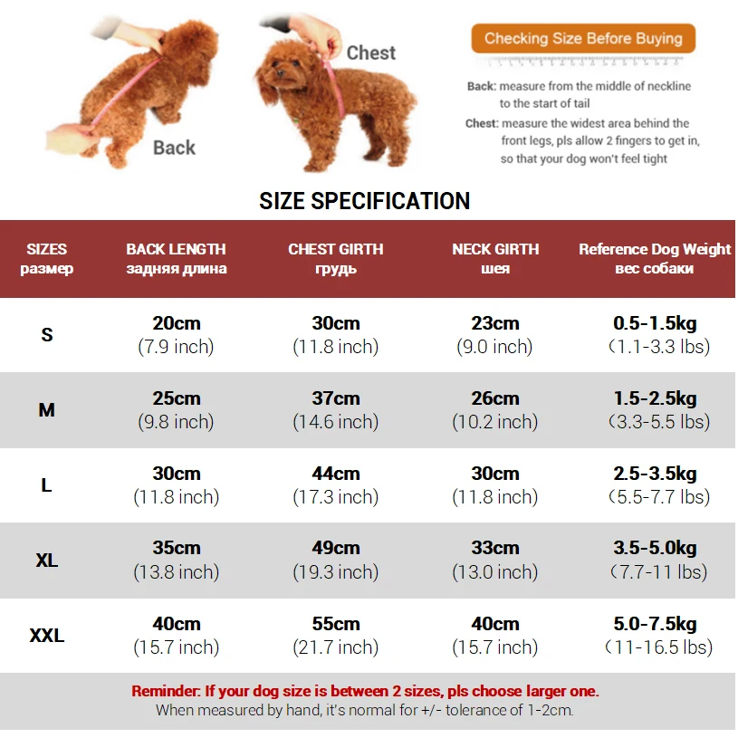 Пожалуйста, измерьте вашу собакуДлина спиныИРазмер грудиПеред покупкой!