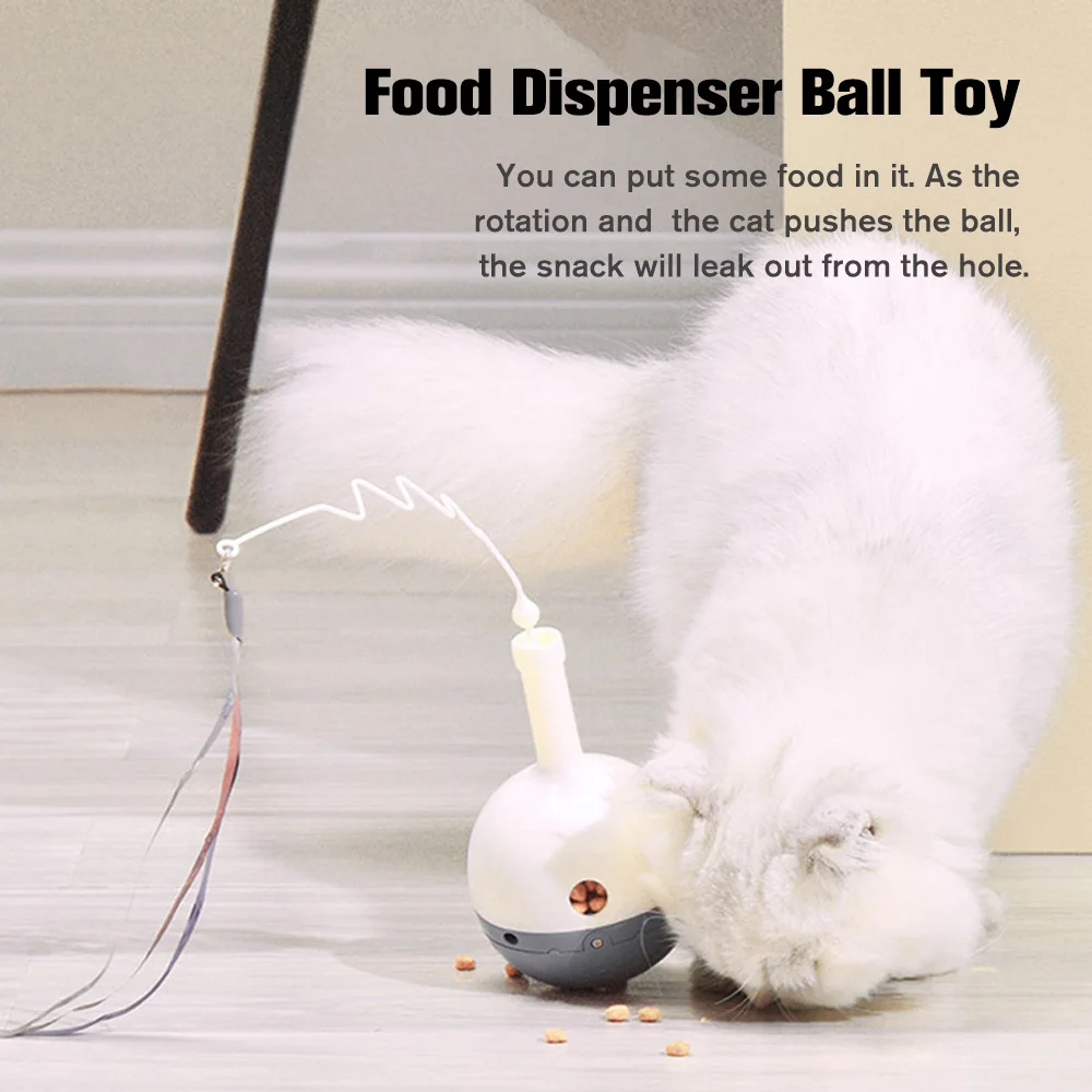 Диспенсер для еды шариковая игрушка: вы можете положить немного еды в него. По мере того, как вращение и кошка толкает мяч быстро или непрерывно, закуска будет вытекать из отверстия в качестве награды для вашей кошки.