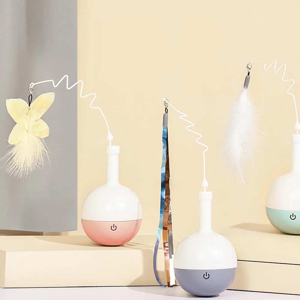 С кошкой очаровательной палочкой и перьями, бабочкой, бумагой, прикрепленной на верхней части, раскачивайте ее, и ваши кошки заинтересуются ей и веселятся за ней. Ваши kittys больше не будут скучать, когда вы находитесь на работе или в бизнесе.