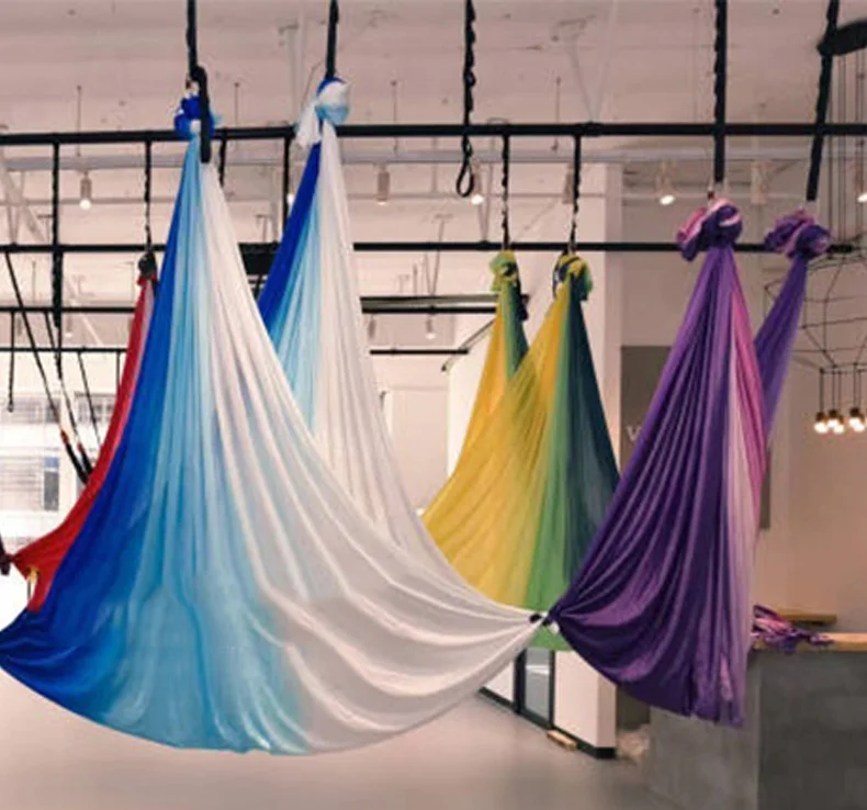 ● Материал ткани: высокопрочный 100% нейлон, лучшее качество, наиболее удобный, эластичный, идеально подходит для занятий йогой и качелями.