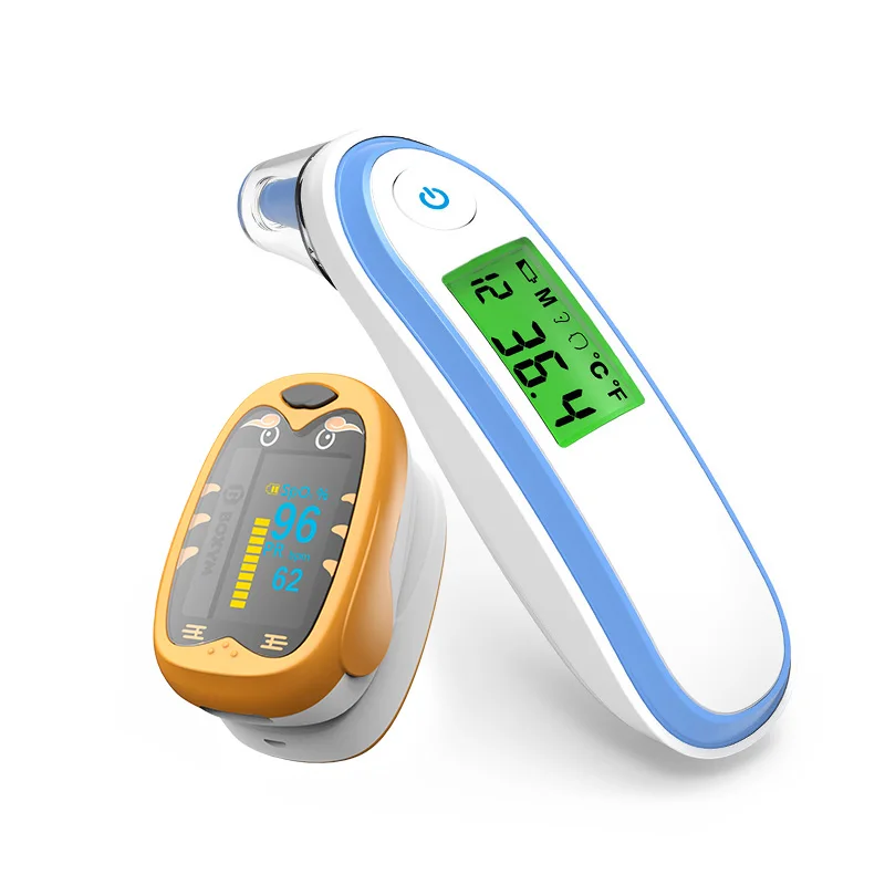 Семейное здоровье путешествия пакеты можно полностью контролировать для вашего здоровья, его легко носить с собой и делает вашу семью счастливее дома или трав Входит в комплект поставки (Детский Пальчиковый Пульсоксиметр + IRT1 Инфракрасный термометр для тела)