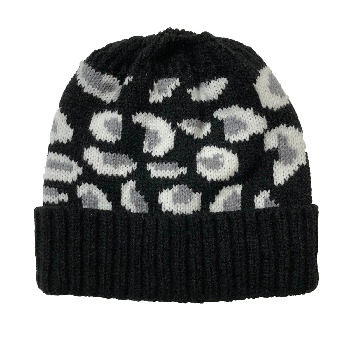 Женский хвостик шапка бини, модная зимняя теплая леопардовая шапка с черепом с грязным отверстием