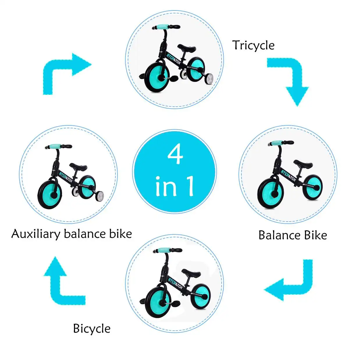 ◆[4 в 1 дизайн]: легкие переключатели между велотренажером, вспомогательным велотренажером, велосипедом, трицикл. Может быть установлен или удален в соответствии с вашими потребностями, педалью или тренировочным колесом. Это лучший выбор в качестве компаньона для вашего ребенка.