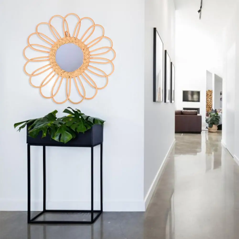 Ротанговое круглое декоративное зеркало туалетный столик косметическое зеркало инновационный арт-деко настенные наклейки украшение гостиной коридор Висячие зеркала