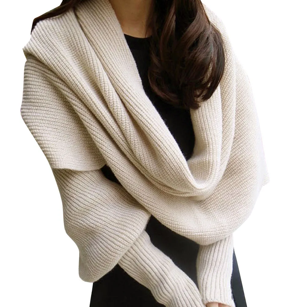Женский зимний теплый вязаный шерстяной шарф с длинным рукавом, шарфы, шаль