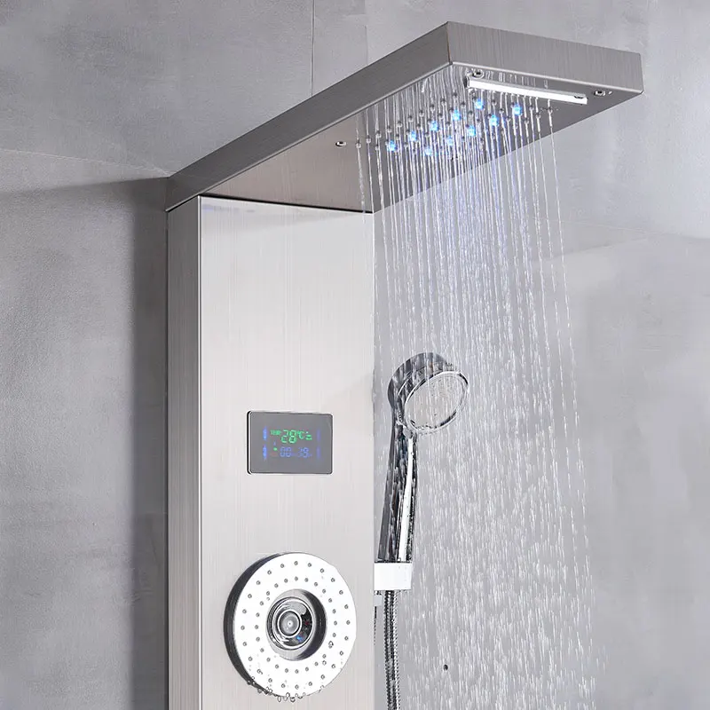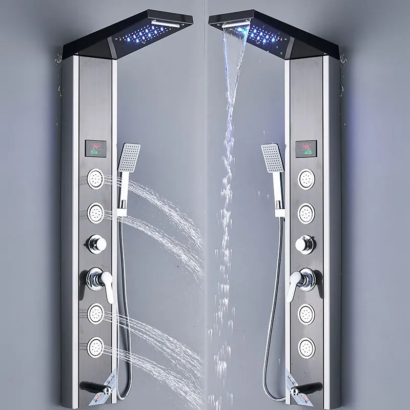 Светодиодный смеситель для душа с креплением на стену, водопроводный смеситель с ручными системами для душа, цифровой дисплей, температурный экран