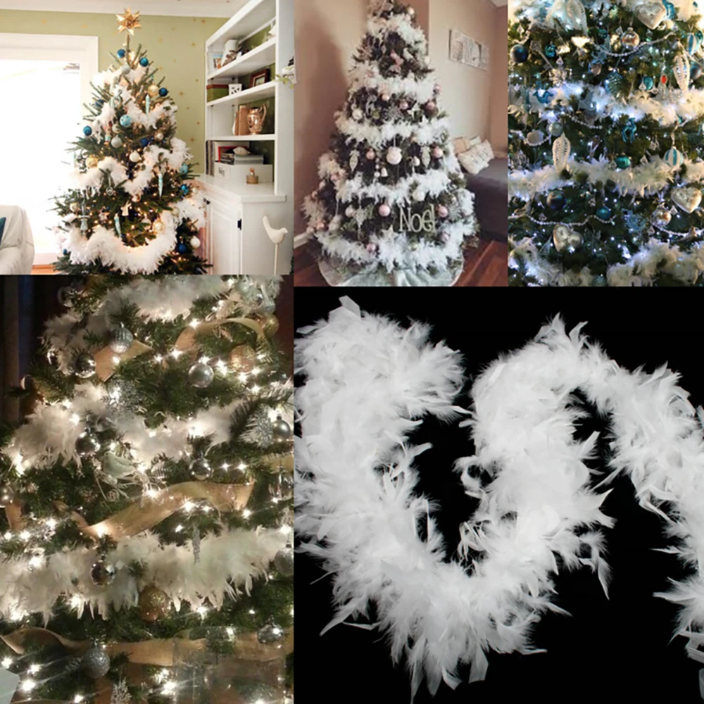5 шт., 2 м, Рождественская елка, белое перо, лента боа, Рождественская лента, Свадебная вечеринка, гирлянда, украшение, одежда, ткань, сделай сам, ремесло