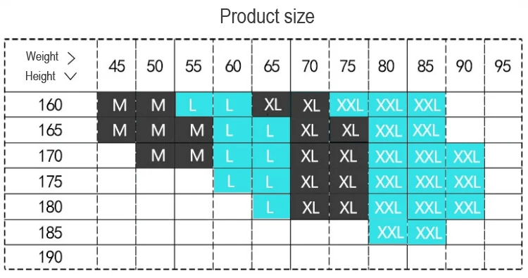 Пожалуйста, выберите больший размер, если ваш вес и рост в середине двух размеров.