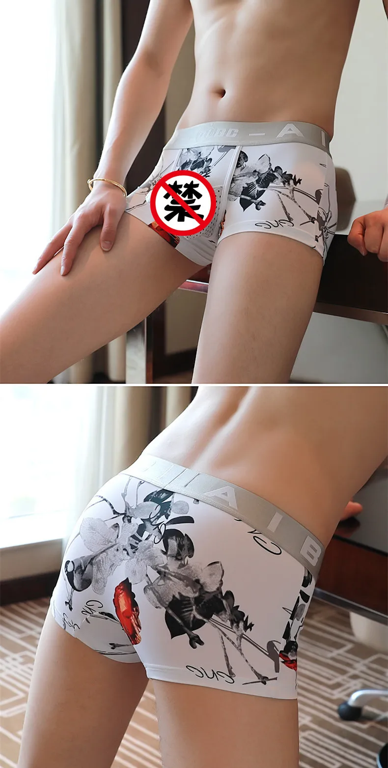 Мужское нижнее белье с принтом слона, ледяные шелковые трусики для пениса, сексуальное Шорты-боксеры для мужчин забавное белье, новинка, трусы для геев, мужские боксеры