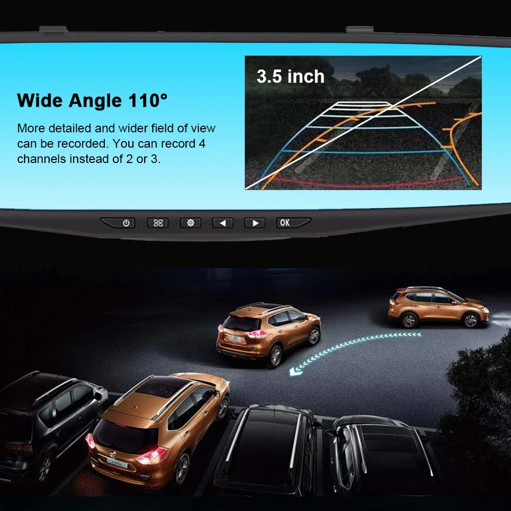 Тип проекта: зеркало заднего вида Автомобильный видеорегистратор Формат видео: AVI Язык OSD: Китайский (упрощенный), китайский (традиционный), английский, русский, японский, французский, корейский, испанский Дисплей Размер: 4,3 "ЖК-дисплей экран Перспектива: 90 градусов Специальная функция: циклическая запись, цифровой зум, двойная камера, g-сенсор, светодиодный дисплей, микрофон, обнаружение движения, ночное видение, отображение времени и даты Кадров в секунду: 30 Камера: 90 градусов + Высокое разрешение ультра широкоугольный объектив Обнаружение движения: Поддержка Синхронизация времени: Поддержка Формат фото: JPEG Разрешение видео: FHD 1080P 1920*1080 ,HD 1280x720P Карта памяти: TF (максимум 32 ГБ) Микрофон: Поддержка Встроенный стерео: Поддержка Мониторинг парковки: поддержка (большинство покупателей будут покупать парковочные линии вместе) Этот продукт 720P интерполяция до 1080P Частота тока: 50 Гц/60 Гц