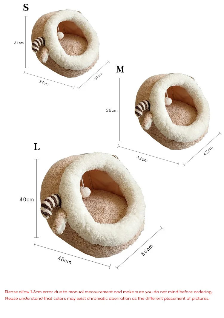 Название: Pet Nest Материал: Arctic velvet + PP Хлопок Особенности: деликатный, мягкий и удобный Применение: кошка и собака Цвет: 6 цветов цвет s Размер s: размер: (длина * ширина * высота) : S ( 35*35*32 см) для 1,5 кг собака/2,5 кг cat M ( 45*42*34 см) Для 2,5 кг собака/5 кг кошка L ( 52*48*39 см) для 7,5 кг собака/10 кг для кошек